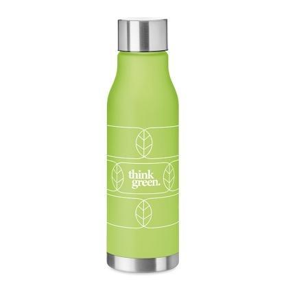 Description:Drinking bottle in RPET with rubberised finish (frosted transparent) and stainless steel cap with inner RPET lid and silicone ring. BPA free. Leak-free. Capacity: 600 ml. Not suitable for carbonated drinks....Read Less...Read More